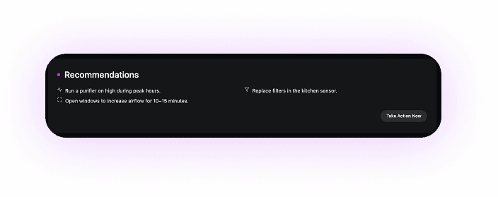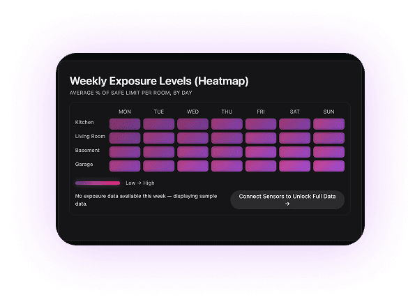 Point-in-time readings made it difficult for users to recognize recurring patterns or problem areas. This heatmap visualizes exposure levels across rooms and days, revealing trends that would otherwise be missed.