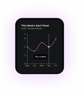Tracks alert volume over time to reveal escalation or stabilization