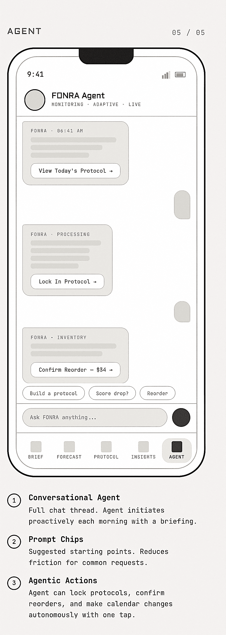 Because FONRA introduces guidance, predictions, and agent support, trust became one of the most important parts of the experience. I learned that users need to feel confident not only in what the product recommends, but also in why it is recommending it.