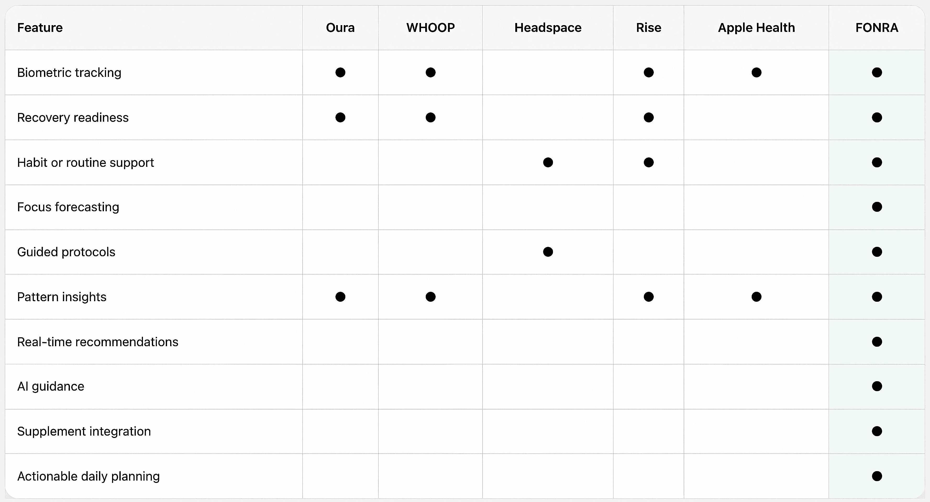Before FONRA, users would need to piece together focus, recovery, and routine decisions across multiple tools. With FONRA, daily planning efficiency isimproved by 3x through a more unified and actionable experience.
